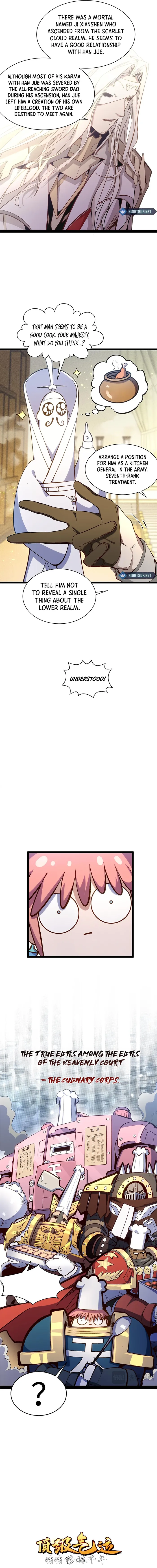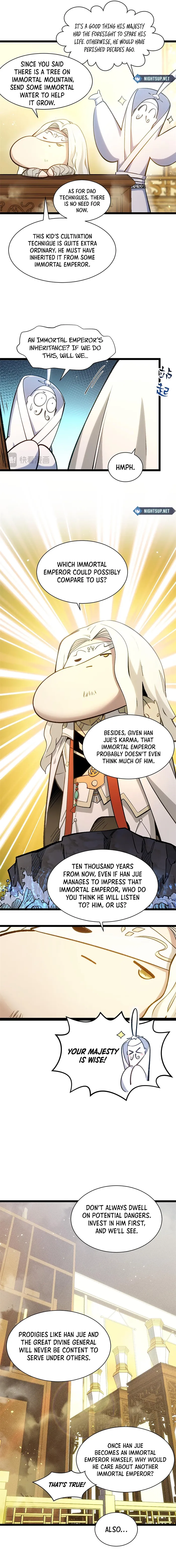 Heavenly emperor is actually good , his youngest child was a born low immortal which people in the immortal realm considered quite a big deal , he gives him to Jan jue as his new disciple , Not to mention that han Jue’s child was born freedom sage (Zenith heaven<Pseudo sage<Sage<Freedom sage) lol